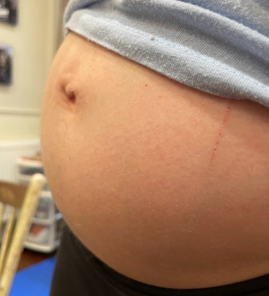 My ab muscles felt like jelly (I couldn’t do a sit-up) and my belly looked like a walnut was sticking out of it when I laughed or flexed.